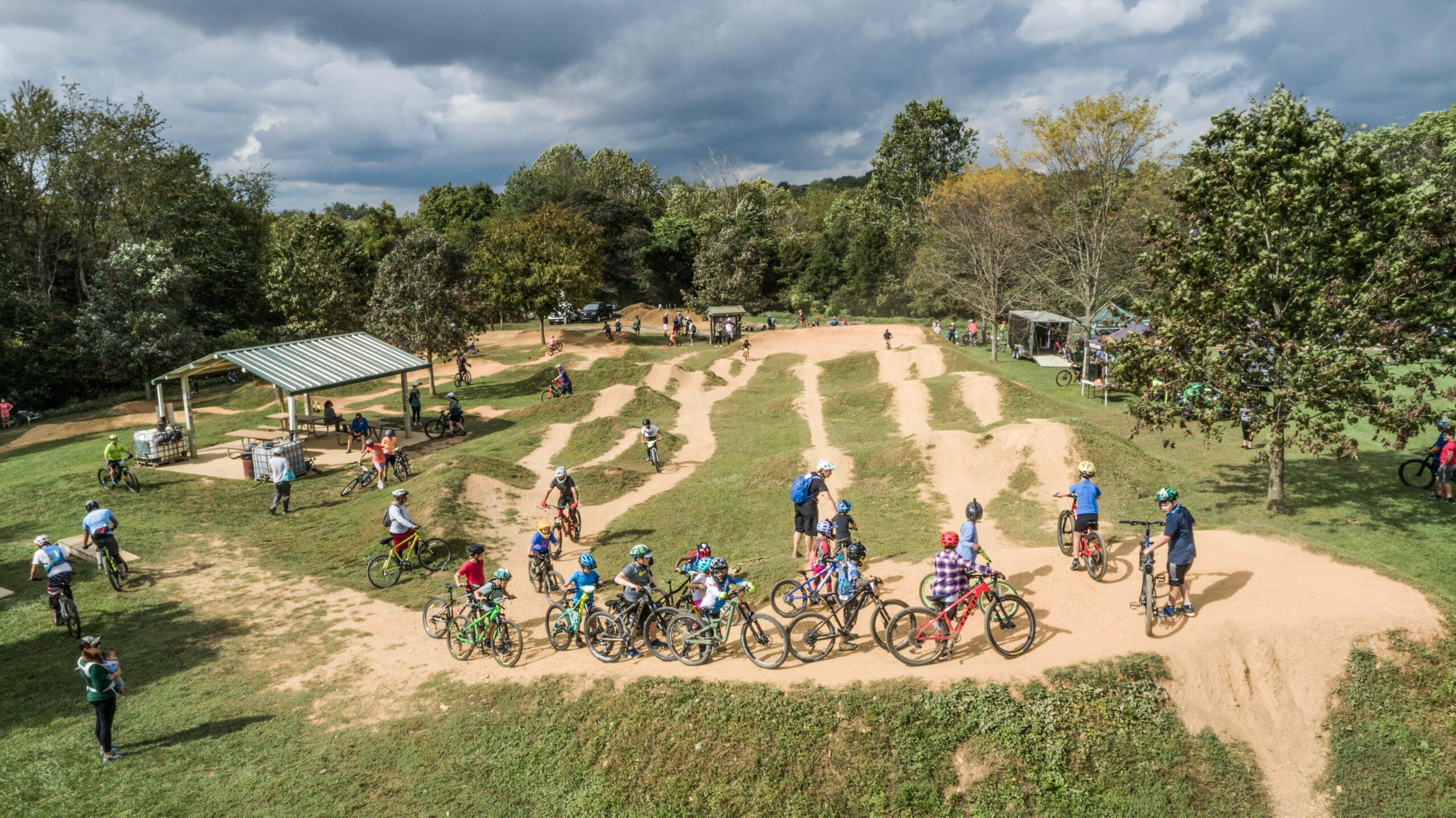 Bike Park- Perfect for riders of all skill levels, the 15,000 square foot South Germantown Bike Park features two pump tracks (one all weather composite), dirt jumps, flow trails with wooden kickers and wall rides, drops, teeters, skinnies and two mulch jumps. The park is designed with progression in mind with small, medium and large features for every ability.
